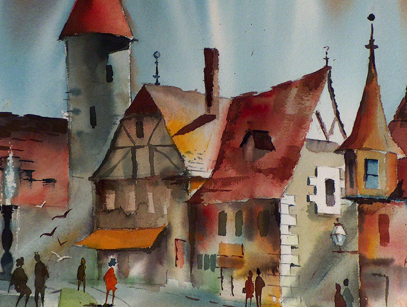 Village Street, Germany Watercolor Visual Dimensions 20" x 27 1/2" $2,000 |