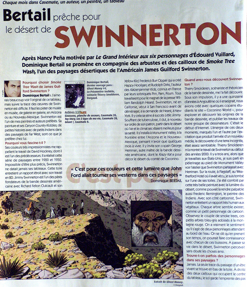 This painting was featured in the March 2014 issue of CaseMate, a French cartoon and animation publication. Click the photo of this article about Swinnerton's painting (to the right) to view this article (published in French) . A copy of this issue of CaseMate is included in the purchase of this painting. |